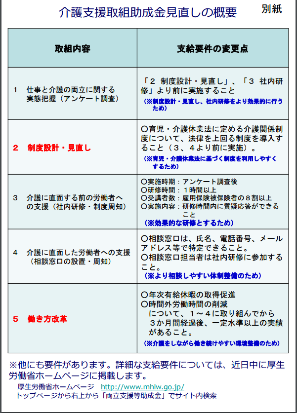具体的には介護関係制度の設計・見直しと働き方改革の取組の2点が追加されました。