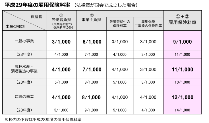 雇用保険二事業の保険料率(事業主のみ負担)については、引き続き1000分の3の予定です。