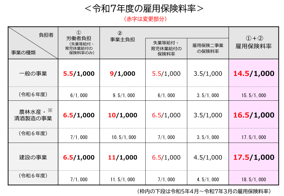 加古川,姫路,社会保険労務士,山本社会保険労務士事務所雇用保険率は、雇用保険の財政状況により毎会計年度、見直しが行われています。令和7年4月1日より以下の様に公表されました。令和6年度より引き下げとなります。