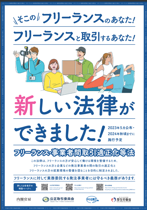 特定受託事業者に係る取引の適正化等に関する法律(フリーランス・事業者間取引適正化等法)説明資料https://www.cas.go.jp/jp/seisaku/atarashii_sihonsyugi/freelance/dai1/siryou2.pdf